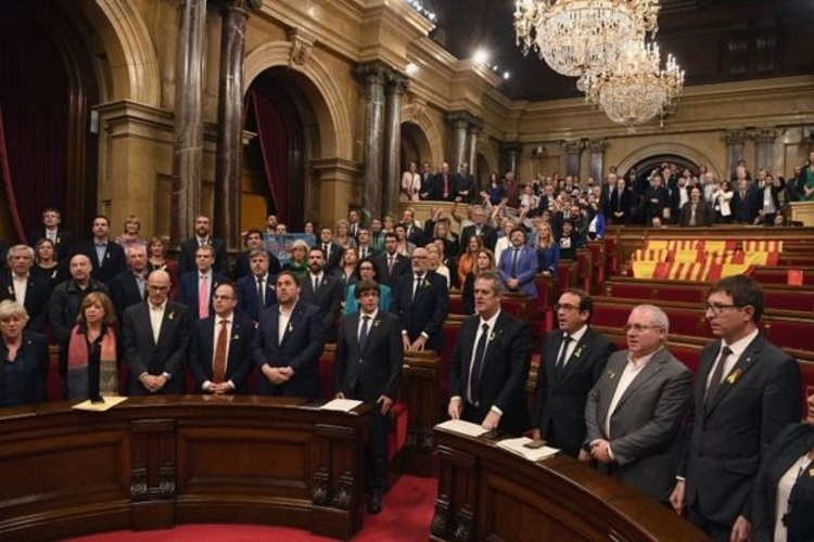 Однако политический пинг-понг с центральными властями ни к чему не привёл, и под угрозой введения прямого правления из Мадрида декларация, наконец, оказалась вынесена на обсуждение парламента. Общеиспанские партии бойкотировали заседание, остались только представители «Подемос», дав 10 голосов «против». Тем не менее оставшихся депутатов хватило, чтобы 27 октября 2017 года 70 голосами утвердить независимость Каталонии.