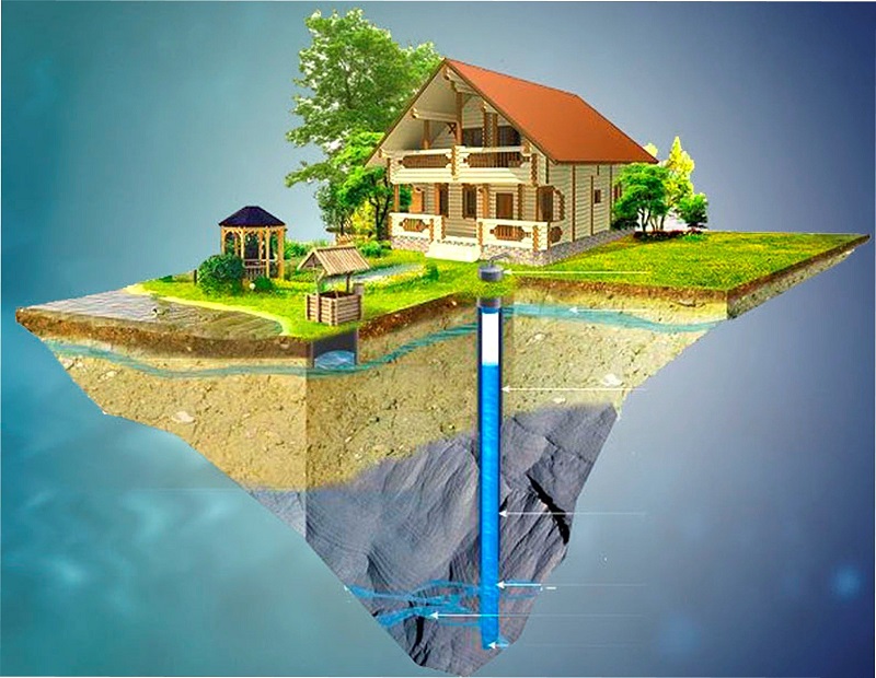 Бурение скважин для воды осуществляется в зависимости от района, ведь в каждой местности своя глубина залегания грунтовых вод и различные породы почвы. Владельцу загородного дома стоит задуматься о том, для каких целей он будет применять получаемую из скважины воду. Например, если потребуется только техническая вода для полива огорода в летний период, то глубина скважины может составлять всего 20 м, а для ежедневного приготовления пищи и питья в течение всего года нужно бурить почву от 30 до 50 м в глубину.