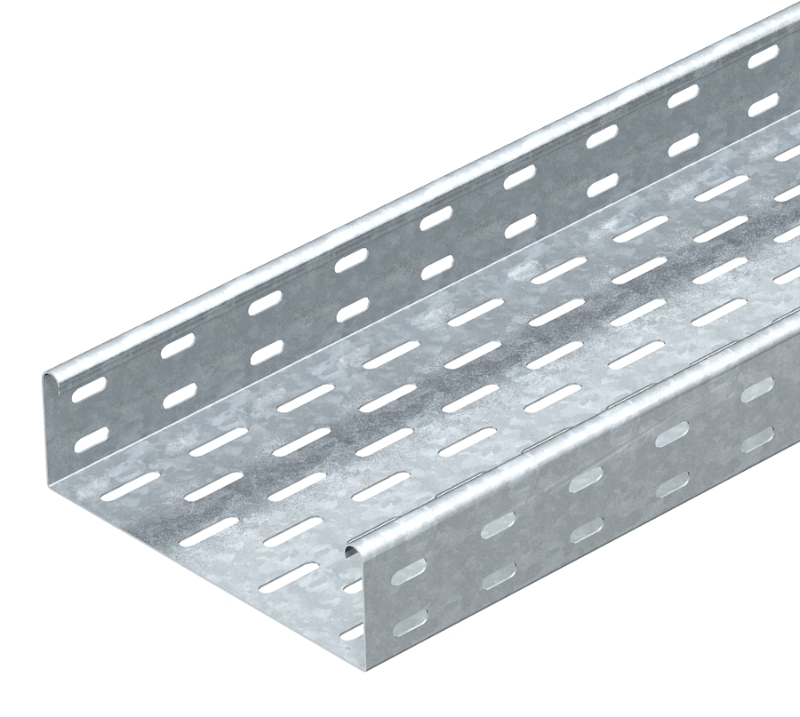 Стандартный вариант исполнения – это сплошной листовой лоток или неперфорированный лоток. Этот вид металлического лотка проще в изготовлении, однако требует большего количества материала, чем его альтернатива – перфорированный лоток. Сплошной лоток хорошо защищает кабель от механических повреждений. В сочетании с крышкой сплошной лоток способен обеспечить степень защиты до IP44. Также на основе сплошных лотков есть решения для огнестойких проходок.