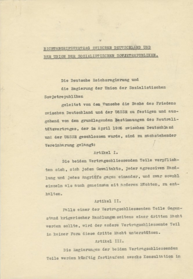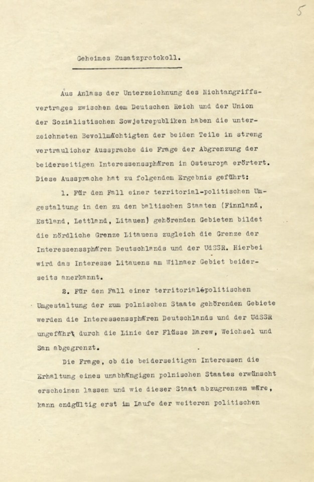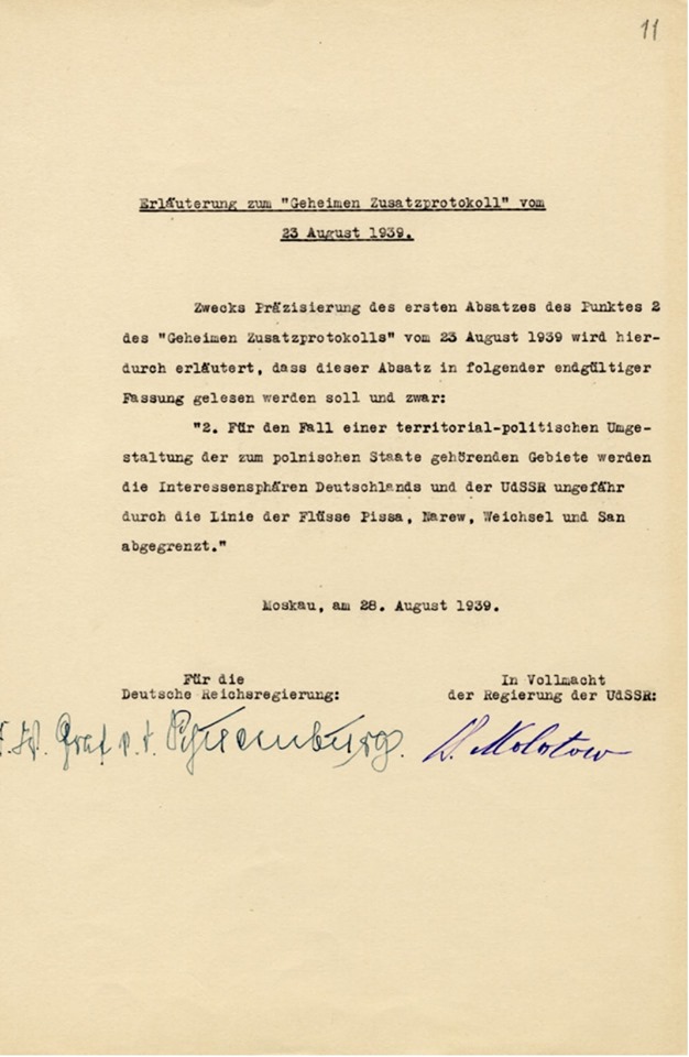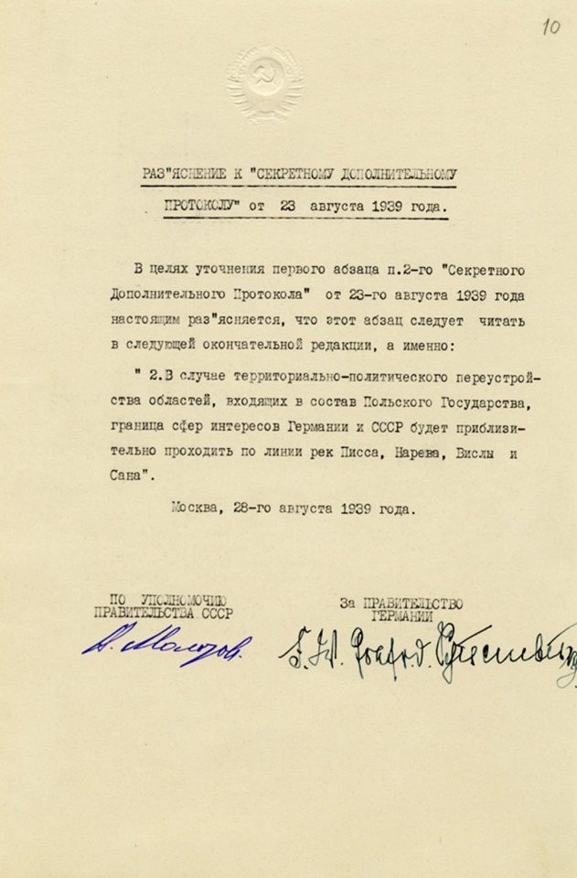 В России опубликованы советские оригинальные документы Пакта Молотова-Риббентропа. Впервые опубликованы сканы советского оригинала Договора о ненападении между Советским Союзом и Германией от 23 августа 1939 года и секретного дополнительного протокола к нему. Ранее историкам были доступны лишь фотокопии немецких оригиналов этих документов.