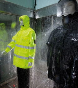 Разница между водоотталкивающей и водонепроницаемой одеждой основана на определении, которое применяется к водостойкости в текстильной промышленности. Международные стандарты определяют давление воды на входе в 8000 мм (гидростатический водяной столб) в качестве предела. Текстильный материал (не готовая одежда) с водяным столбом 8000 мм можно назвать водонепроницаемым. Однако все, что ниже, можно назвать только водоотталкивающим.